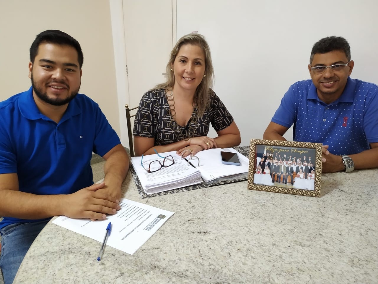 O prefeito em exercício, Caio Aoqui, o presidente da Câmara Municipal, Pastor Eliézer de Carvalho, e a secretária municipal de Assistência Social, Leusia Romano, se reuniram para discutir a realização da segunda edição do “Dia do Casamento Comunitário”.