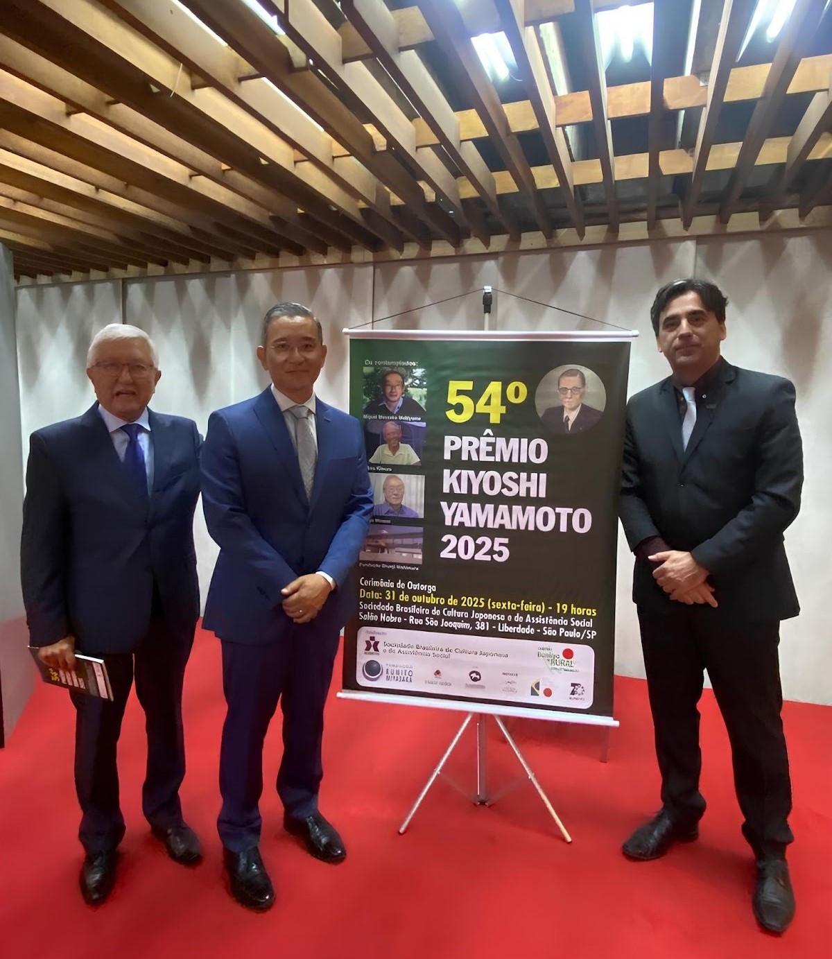 SOBRE O EVENTO: A entrega do Prêmio Kiyoshi Yamamoto em sua 54ª edição foi realizada na sexta-feira, 31 de outubro de 2025, a partir das 19h, no Sociedade Brasileira de Cultura Japonesa e de Assistência Social – Bunkyo, no Salão Nobre, localizado à Rua São Joaquim 381 – 2º andar – Liberdade, São Paulo. (bunkyo.org.br) - O evento, que neste ano também marca os 130 anos do Tratado de Amizade Brasil-Japão e os 70 anos do Bunkyo, reuniu personalidades do setor agropecuário, acadêmico e institucional. (fsnt.org.br).