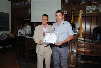 Por iniciativa do vereador Ninha Fresneda (PSDB), a Câmara concedeu Moção de Congratulações ao 1º sargento Márcio Combinato por ter assumido o comando da Base da Polícia Rodoviária de Tupã no início de agosto. A homenagem reuniu familiares e policiais rodoviários na Câmara Municipal.